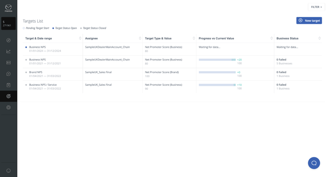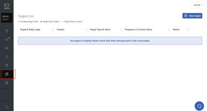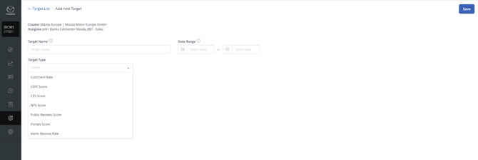 The target will be visible only to the creator and the assignee. This includes all assignee subaccounts / dealerships as they contribute to achieving / failing of the target.