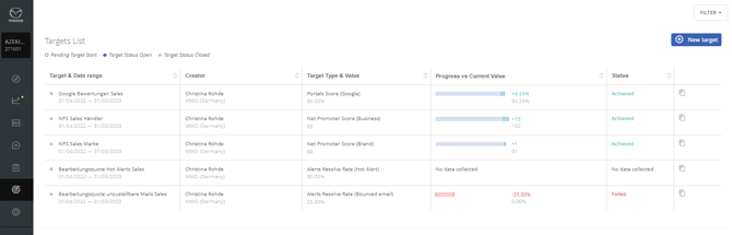 Below you can see an overview of the targets that you created or that were assigned to you. This is called target list, which is the starting page when navigated to the target section.
